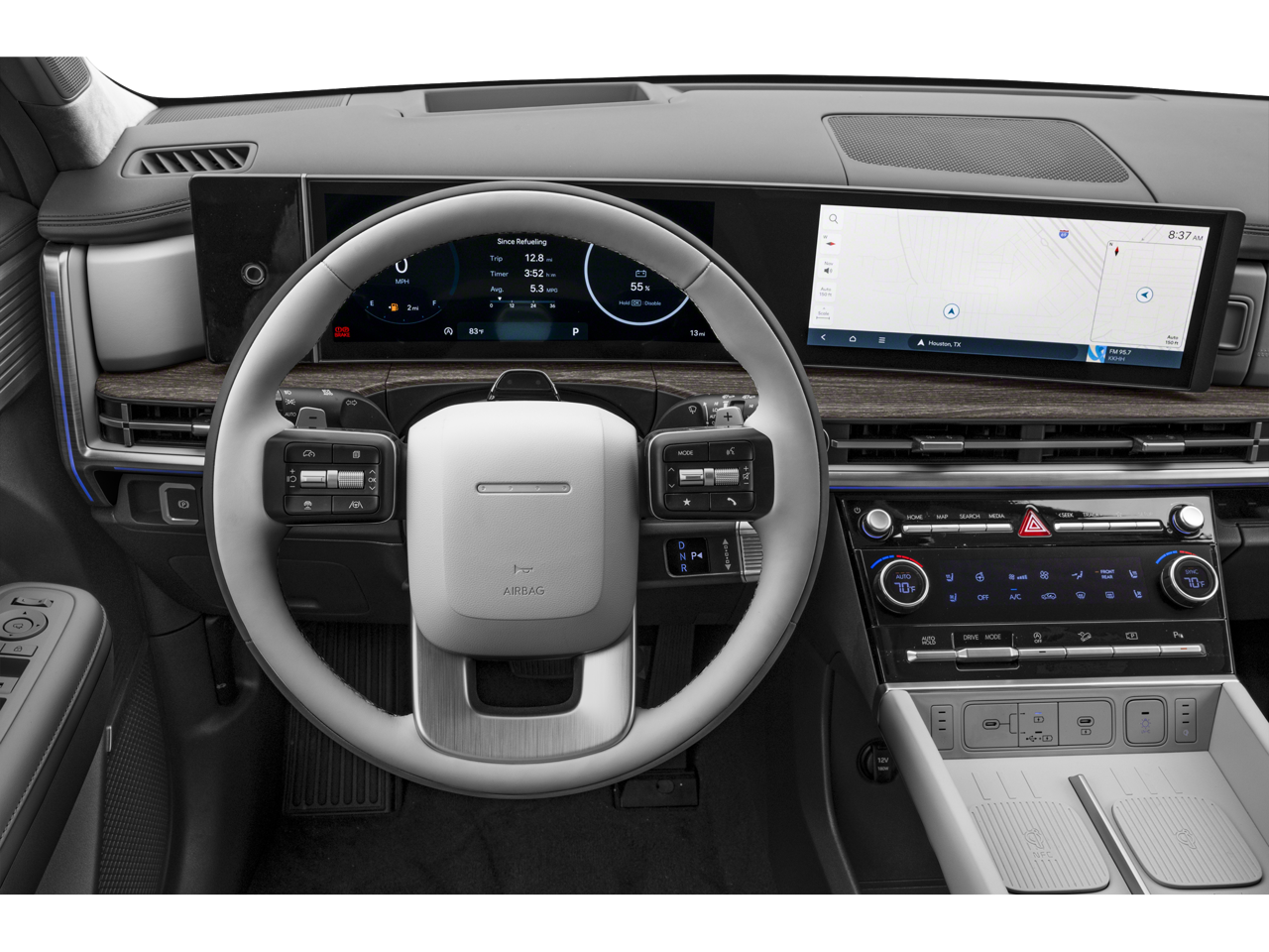 Leather Seats, Third Row Seat, Navigation, All Wheel Drive, Quad Bucket Seats, Power Liftgate, Heated Driver Seat, Heated Rear Seat, Cooled Driver Seat, Back-Up Camera Rear Spoiler, MP3 Player, Privacy Glass, Remote Trunk Release. Hyundai Calligraphy with Serenity White exterior and Black interior features a 4 Cylinder Engine with 277 HP at 5800 RPM*.