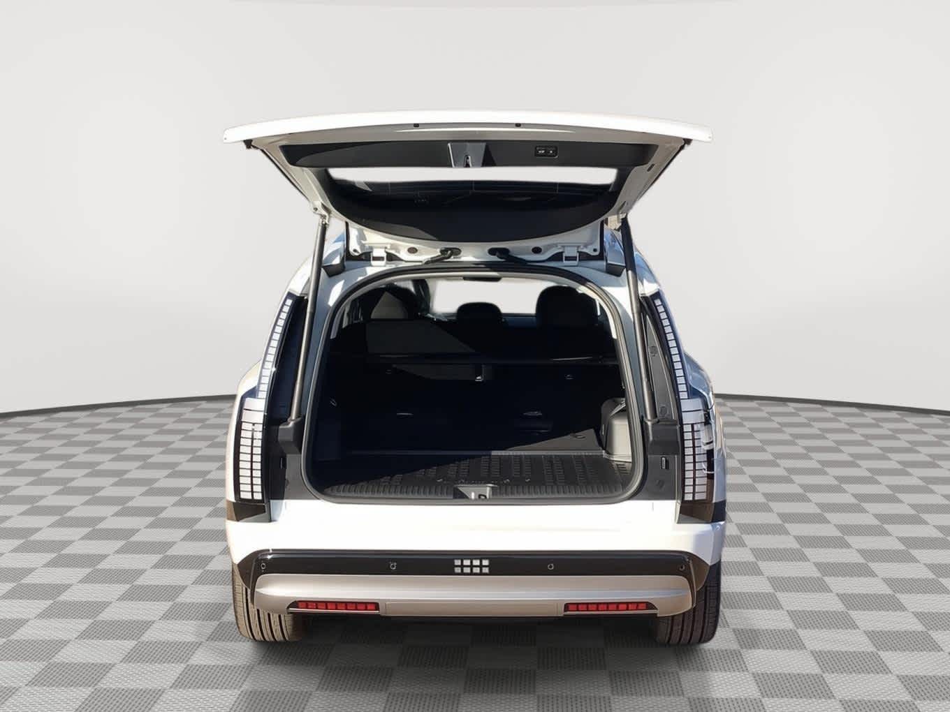 Third Row Seat, Navigation, All Wheel Drive, Power Liftgate, Rear Air, Heated Driver Seat, Heated Rear Seat, Cooled Driver Seat, Back-Up Camera, Satellite Radio. Rear Spoiler, MP3 Player, Privacy Glass, Remote Trunk Release. Hyundai SEL with Snow White Pearl exterior and Black interior features a Electric Motor.