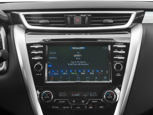 - Radio: AM/FM/CD Audio System w/Navigation -inc: MP3/WMA reader, 6 speakers, auxiliary audio input jack, SiriusXM satellite radio, NissanConnect w/Mobile Apps, 8" color display w/multi-touch control, Nissan voice recognition for navigation and audio, SiriusXM Traffic, SiriusXM Traffic Link (fuel prices, weather, movie listings, stock info and sports scores), HD Radio, front USB connection port for iPod interface and other compatible devices, Bluetooth® hands-free phone system, streaming audio via Bluetooth® and hands-free text messaging assistant